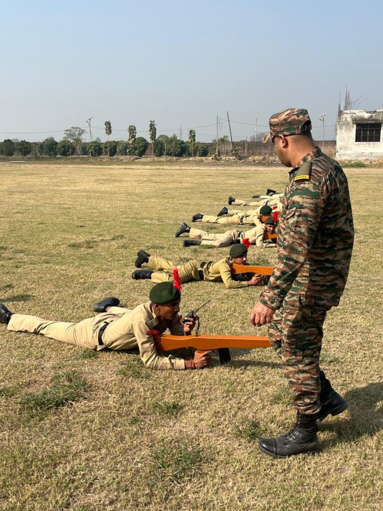इसके पश्चात् सूबेदार अमित शर्मा ने दैनिक अभ्यास कराते हुए सावधान, विश्राम, दाॅहिने मुड, बाॅये मुड एवं मार्च पास्ट करने का तरीका सीखाते हुए ड्रिल की बारीकियों से अवगत कराया। इसके उपरान्त शिविर में कैम्प कमानडेन्ट कर्नल सौरभ डिमरी, डिप्टी कैम्प कमानडेन्ट कर्नल नीरज कुमार एवं सभी सहयोगी एन सी सी अधिकारियों, पी आई स्टाफ, सिविल स्टाफ एवं कैडेटस् का सामूहिक चित्र लिया गया।